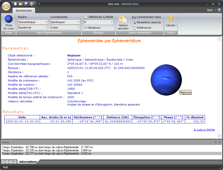 2009-05-15 : Version beta 2 Présentation Éphéméridium vient d'atteindre le stade de développement dit « Beta 2 ». Trois mois furent nécessaires pour atteindre ce stade. Il produit enfin des éphéméride relativement complètes. ◄ Retour